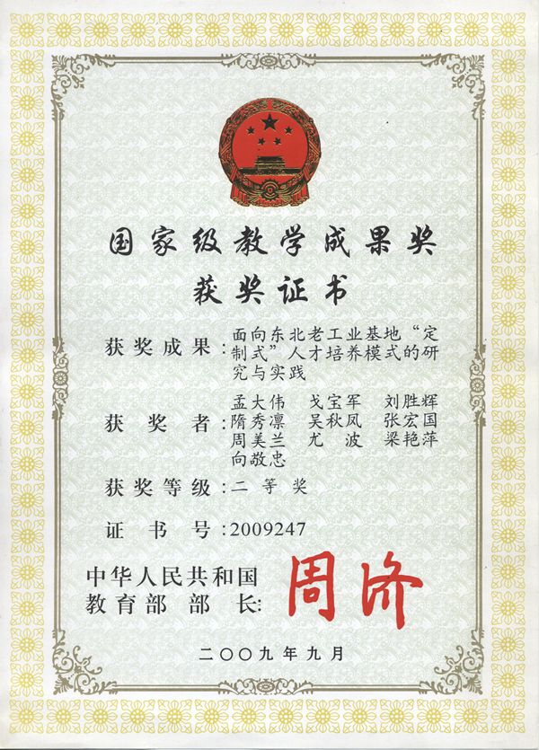 2009年,软件学院构建的基于校企合作的“2+1+1”定制式人才培养模式和校内校外“两段式”的实践教学体系受到业界广泛认可。为此,学院被省教育厅确立为黑龙江省人才培养模式创新实验区。同年,以软件学院为主要参加单位的《面向东北老工业基地“定制式”人才培养模式的研究与实践》项目获国家级教学成果二等奖,实现了我校国家教学成果奖“零”的突破。