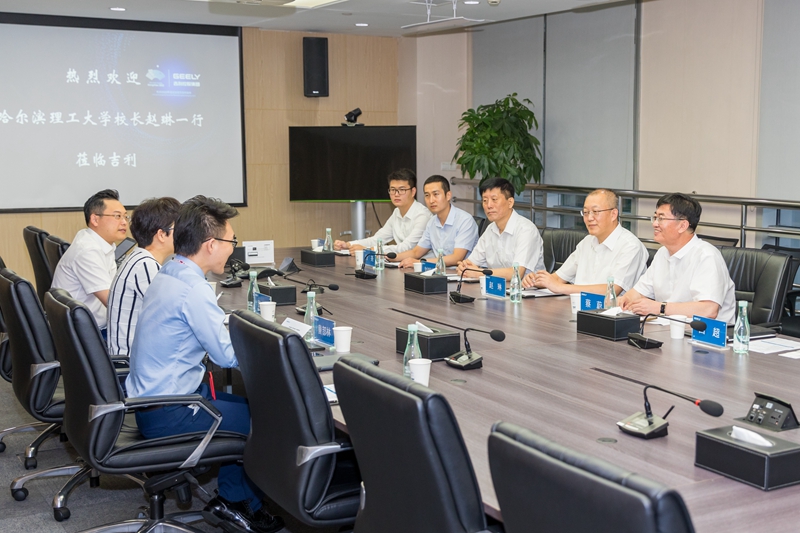 参观结束后,赵琳校长与吉利集团董事长、哈理工校友李书福先生、集团副总裁魏梅、副总裁杨学良等进行了会谈交流,就如何加强校企双方在人才培养、科学研究、成果转化等方面的深度合作达成初步意向性意见。