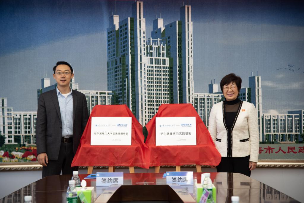 陆岩副书记与秦亮总监共同为哈尔滨理工大学吉先锋俱乐部、学生就业实习实践基地揭牌