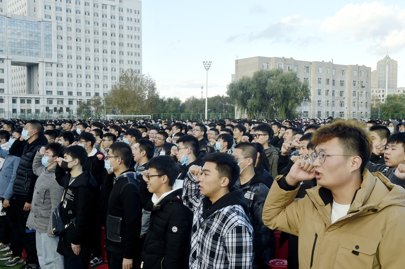 10月11日15时,2020级新生开学典礼在南区运动场举行。校党委书记张洪涛,校长赵琳,校党委副书记陆岩,副校长郭二军、房文斌,纪委书记姚军,副校长刘侠出席活动,校工会主席徐向晨在荣成学院通过视频直播出席活动。相关部门负责人、各学院院长、主管学生工作书记(副书记)、全体新生辅导员、2020级新生参加了开学典礼。典礼由陆岩副书记主持。