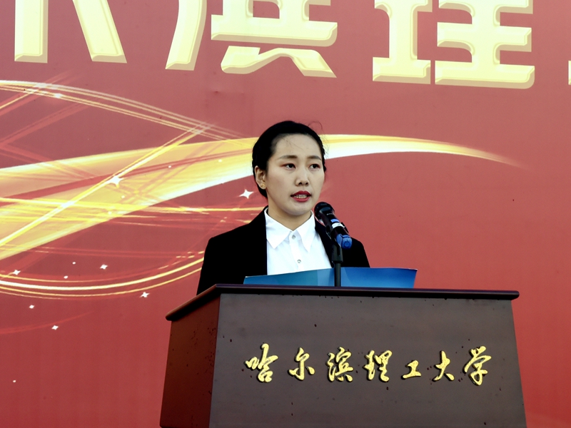 理学院2018级硕士研究生代小爽作为在校生代表发言。她代表全体在校生向来自五湖四海的2020级新同学表示衷心的祝贺和热烈的欢迎!祝贺大家在疫情的“大考”中顺利完成学业,迈向人生新台阶。欢迎大家成为哈尔滨理工大学的一员,踏出人生新征程。她希望学弟学妹们牢记老校长“王大珩精神”,牢记“知行统一,博厚悠远”的校训,努力学习,艰苦奋斗,用自己的智慧和勇气创造精彩的人生。