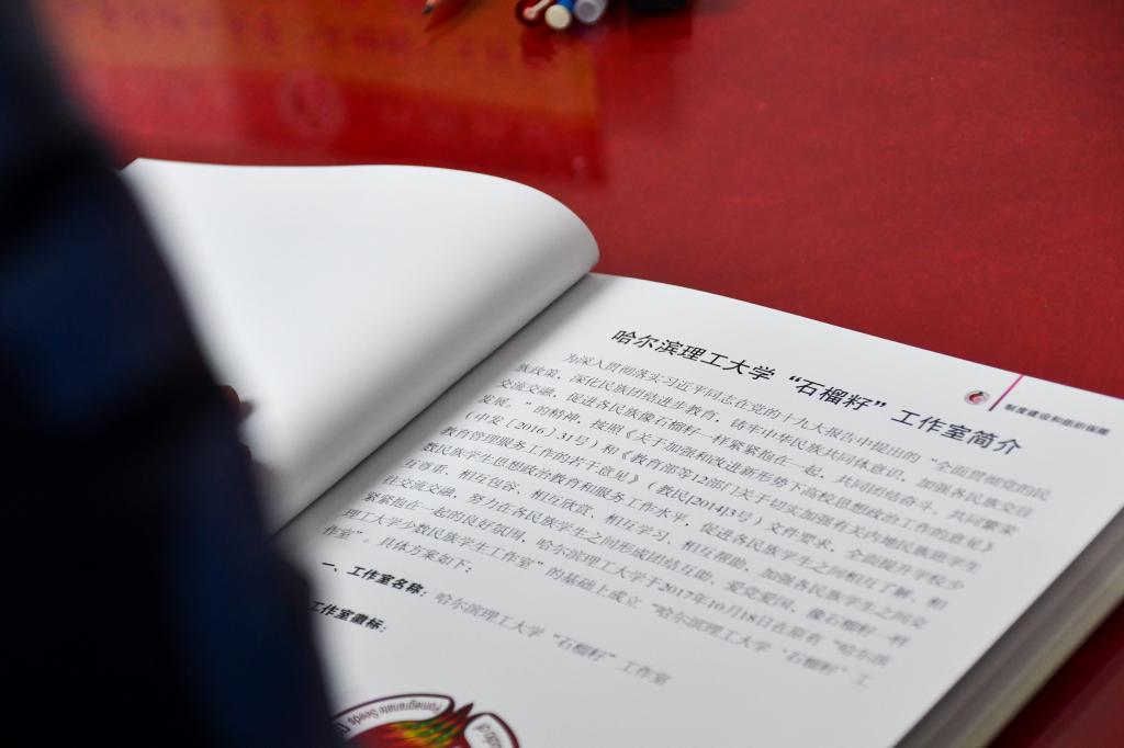 此次活动首站走进哈尔滨理工大学,省教育厅相关部门负责同志及15个媒体平台记者代表深入我校,党委宣传部部长姜国玉,人事处处长杨忠学,宣传部副部长于海洋,“石榴籽”工作室主持人任佳伟及团队成员罗来珍、邬长明、艾荻、王宏建、张发年、刘培垟、刘元昊等陪同采访团一行人员参观“石榴籽”工作室。任佳伟详细介绍了工作室制度建设、先进做法、思想引领、道德践行等方面情况。采访团人员对我校少数民族学生培养及石榴籽工作室发展情况做详尽调研和细致了解,查阅石榴籽工作室建设情况汇报材料并召开工作室成员做法经验分享座谈会,工作室成员从课程思政、心理建设、网络思政、促进就业、学习帮扶等方面做了具体介绍,并针对媒体记者们提出的问题逐一做出解答。
