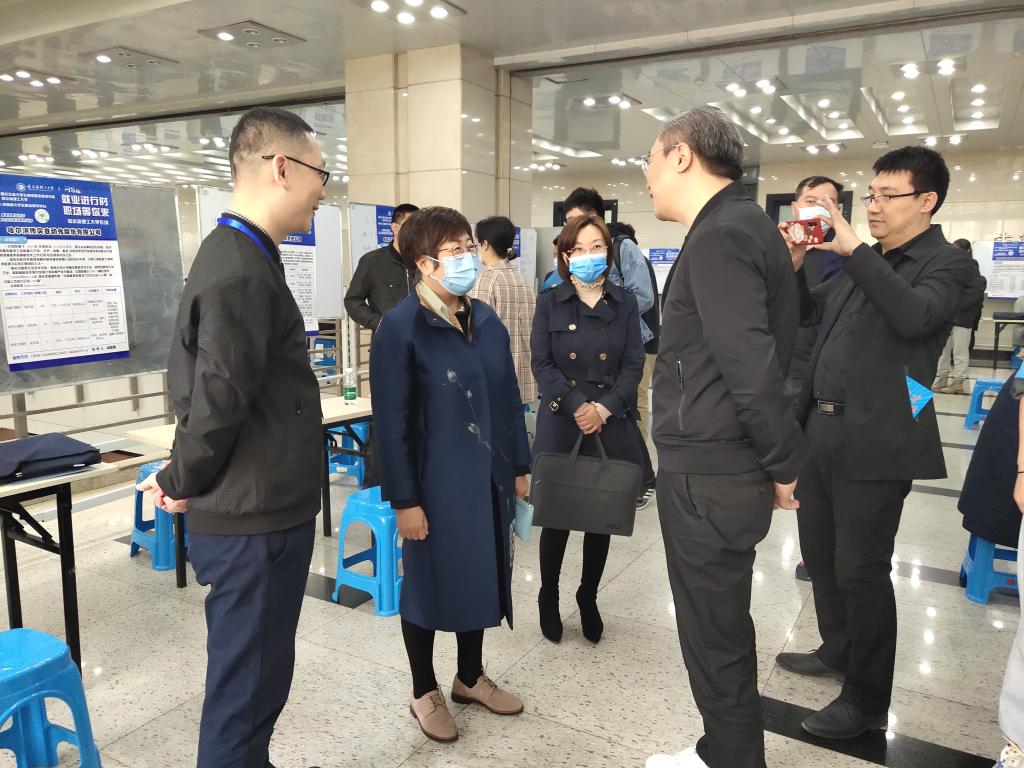 校党委副书记陆岩到招聘会现场检查指导,听取学生处关于本场招聘会召开和参会企业情况的汇报,了解毕业生留省就业状况,并对进一步做好我校2021届毕业生留省就业提出具体要求。在航天科工哈尔滨风华有限公司、哈尔滨轴承集团有限公司、黑龙江新和成生物科技有限公司、黑龙江省黑建一建筑工程有限责任公司等国有企业及常年来我校开展招聘活动的用人单位展位前,陆岩向企业招聘工作人员了解企业用人需求情况,就这些企业单位对学校就业工作长期支持和毕业生认可表示感谢,并代表学校向在企业工作的校友带去诚挚的问候。招聘会结束后,陆岩一行又到第三会议、第四会议室,分别与来校招聘的中国广核集团有限公司、深圳市开步电子有限公司的领导进行了交流。