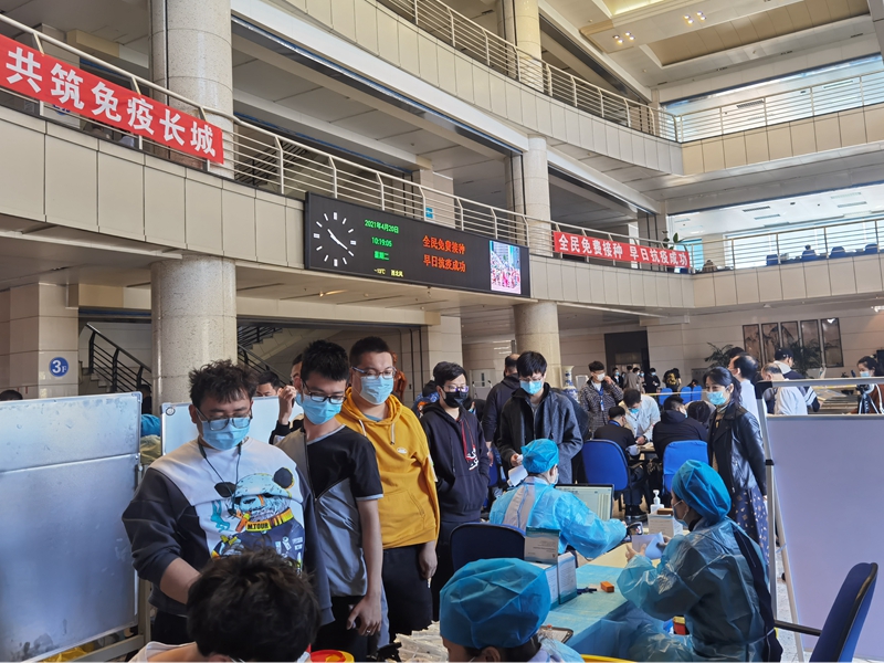 自3月16日学校首次组织开展疫苗接种工作至4月22日,包括自行在校外接种疫苗的师生员工在内,我校累计有22395名师生员工接种了新冠疫苗。全校师生团结一心,正在形成有效的校园健康防线和免疫屏障,疫苗接种工作取得了阶段性成果。(摄影:耿洪杰、徐状)