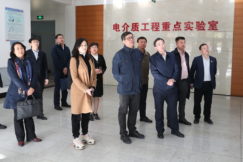 栾志成副市长和华建刚董事长一行参观我校电介质工程省部共建国家重点实验室培育基地