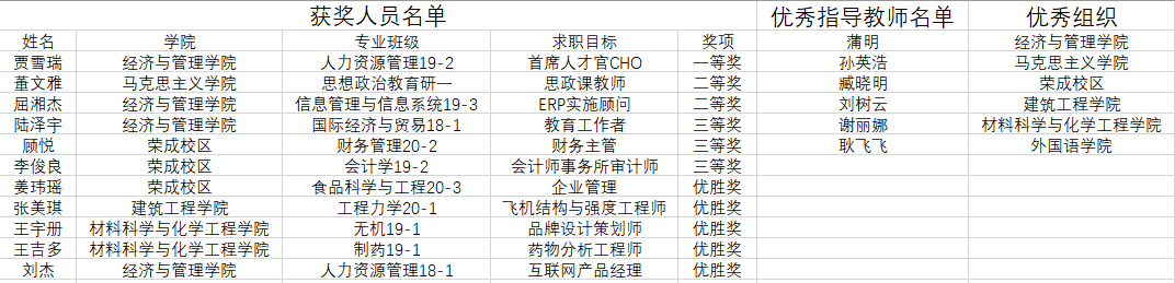 获奖名单