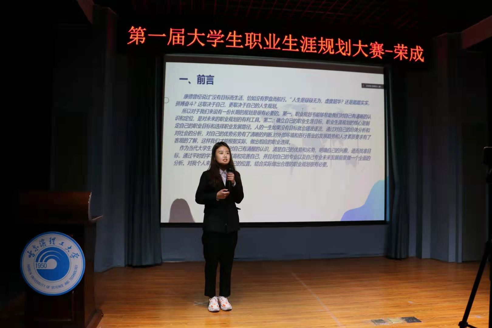决赛分为职业规划阐述和提问回答两个环节。参赛选手结合VCR和PPT从自我认识、职业认知、职业生涯规划、制定行动策略等方面进行阐述,评委根据学生的阐述以及规划方案设计进行提问并提出合理建议。经过专家评委的认真评选,本次比赛评选出一等奖1名,二等奖2名,三等奖3名,优胜奖5名,马克思主义学院孙英浩等8位教师被评为优秀指导教师,荣成学院、经济与管理学院、马克思主义学院、材料科学与化学工程学院、建筑工程学院和外国语学院获得优秀组织奖。部分获奖同学将代表学校参加第十届黑龙江省大学生职业生涯与创业规划大赛。