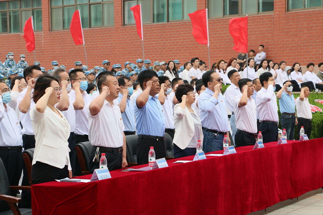 铮铮誓言表决心,赤诚永恒守初心。学生工作办公室主任赵军领誓,带领现场全体党员面对党旗进行宣誓,重温入党誓词,党员在重忆往昔中感怀党恩,在重温誓言中牢记使命,进一步坚定了永远忠于党、永远跟党走的信心和决心。