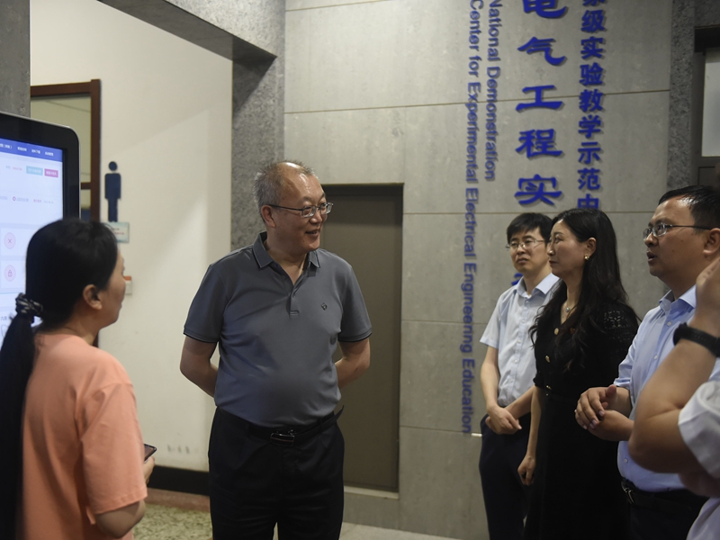 教务处、科技处、保卫处、后勤管理服务中心、电气学院、材化学院等部门负责人和有关同志陪同检查。