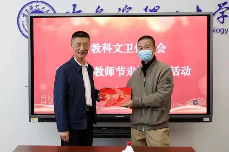 情系教师节,慰问暖人心。9月8日上午,在第38个教师节来临之际,黑龙江省总工会党组成员、省教科文卫体工会主席吕光英一行来到我校,对我校1名在职困难教职工和1名驻村干部进行了慰问。