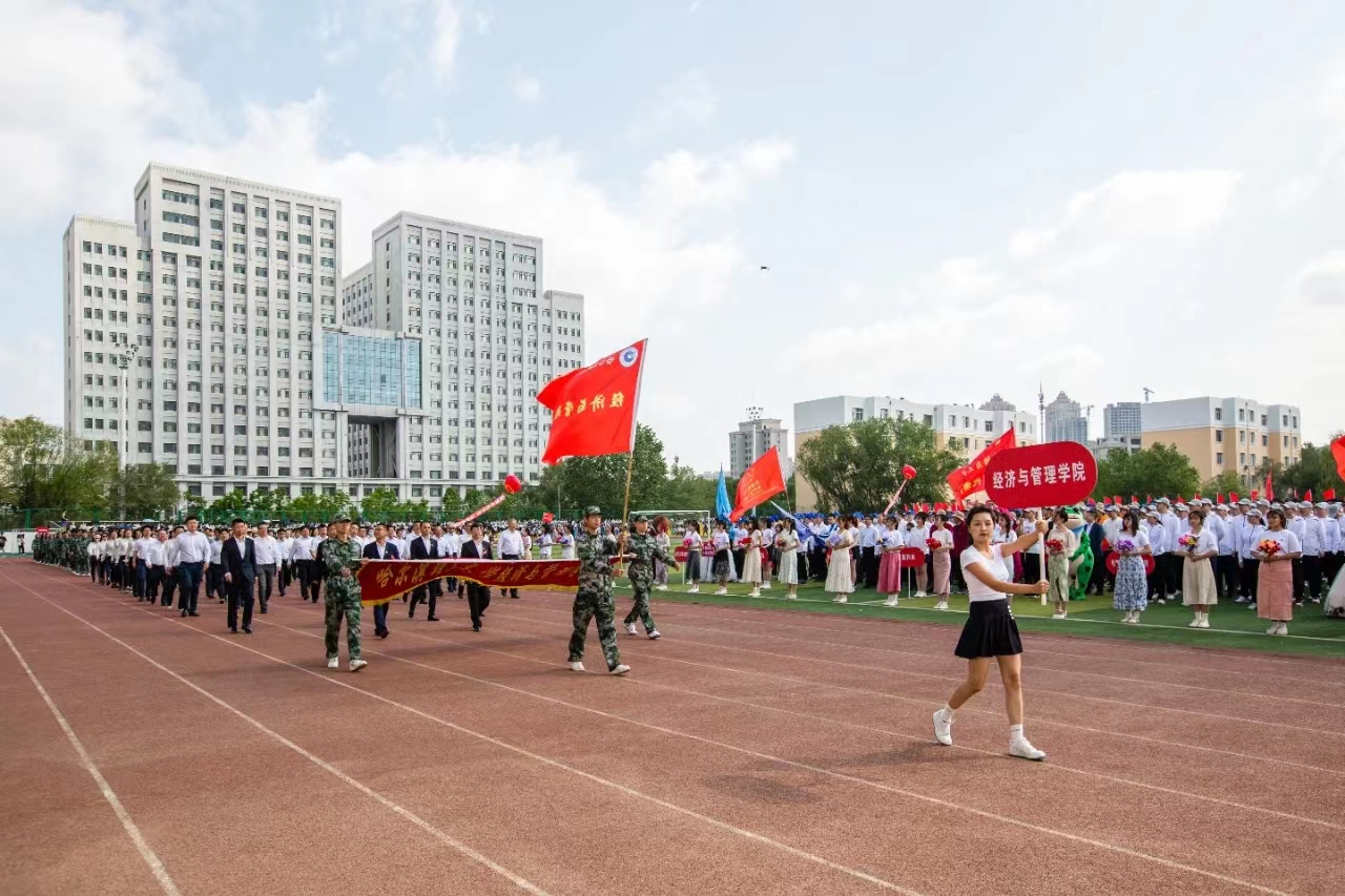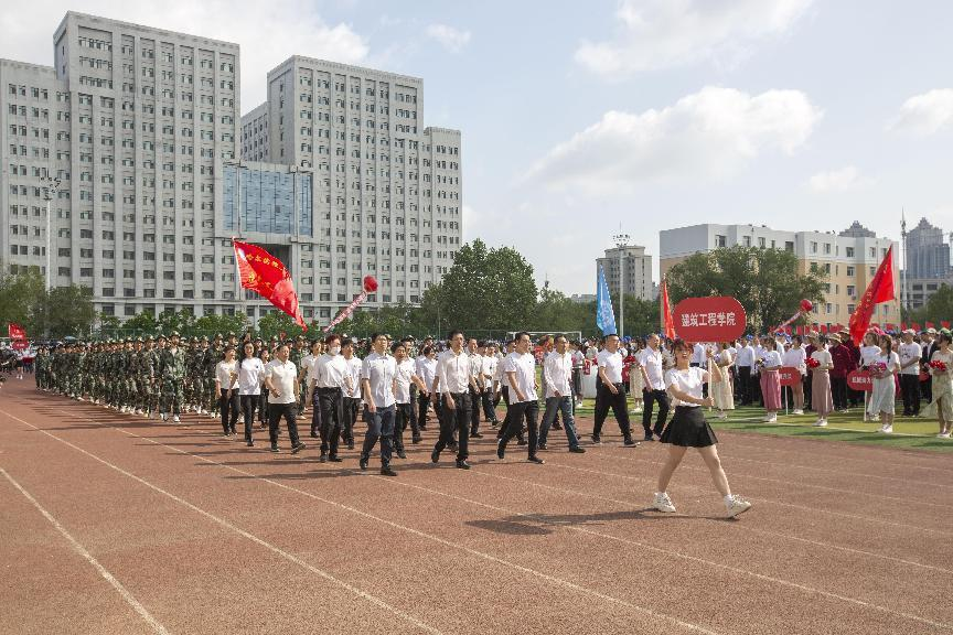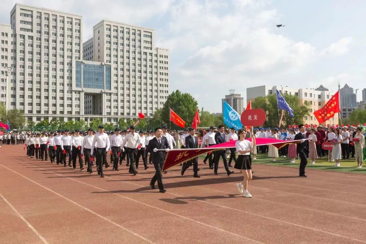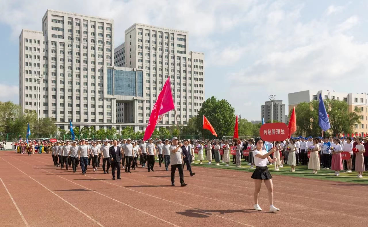 初夏犹清和,青春肆飞扬。时隔三年,全校师生迎来2023年田径运动会。5月26日8时,运动会在南区运动场盛大举行。校党委书记赵琳,纪委书记孙树海,副校长臧永军、杜军,校党委常委、宣传部部长刘迪以及大会主席团成员出席大会。运动会开、闭幕式由体育教学部主任任勇主持。