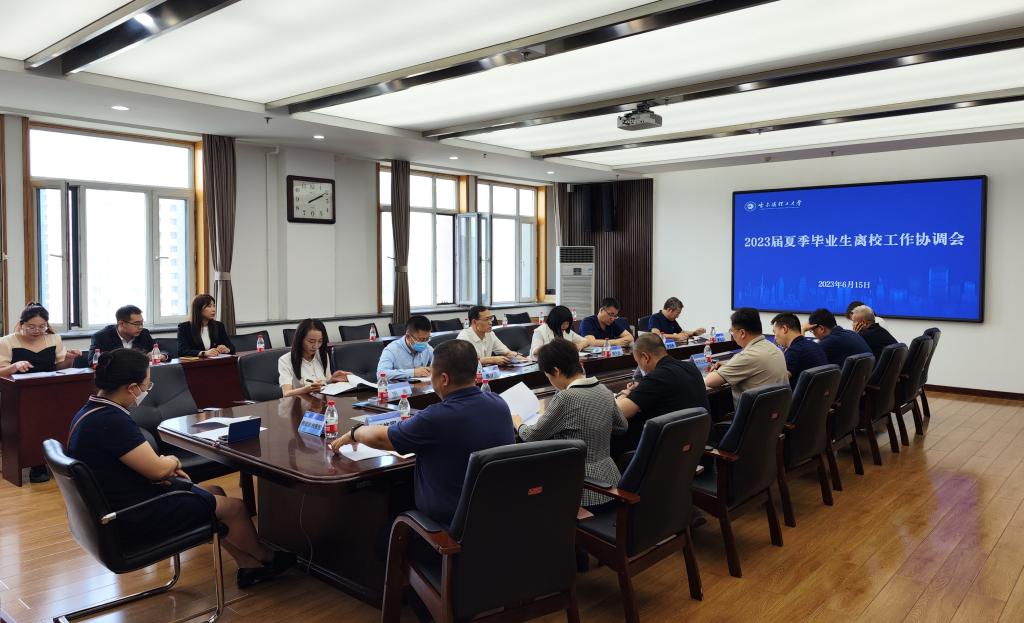 郭加利充分肯定了各职能部门为毕业生离校工作做出的努力,要求各部门、各学院要以生为本,周密细致做好毕业生离校工作,他提出三点工作要求:一是毕业生离校工作要认识到位。要充分认识到毕业季是学校育人工作中的重要环节,要以提高毕业生对学校的满意度和认同度为导向,认真细致地做好毕业生教育管理与服务工作;二是毕业文化活动要组织到位。各部门、各学院要结合学院实际、结合主题教育、结合专业特色、结合学校《哈尔滨理工大学2023年毕业季“踔厉奋发启新程 笃行致远向未来”毕业生文明离校主题教育》通知要求,设计好各项活动,力求有特色、有亮点、有温度,营造温馨又富有教育意义的毕业氛围;三是毕业生离校服务要保障到位。各职能部门与学院要注意密切配合、优化流程、提前部署,打通难点、堵点,以热情的服务态度、专业的服务水平、高效的服务品质,为毕业生离校提供周到、温馨、便捷的服务。