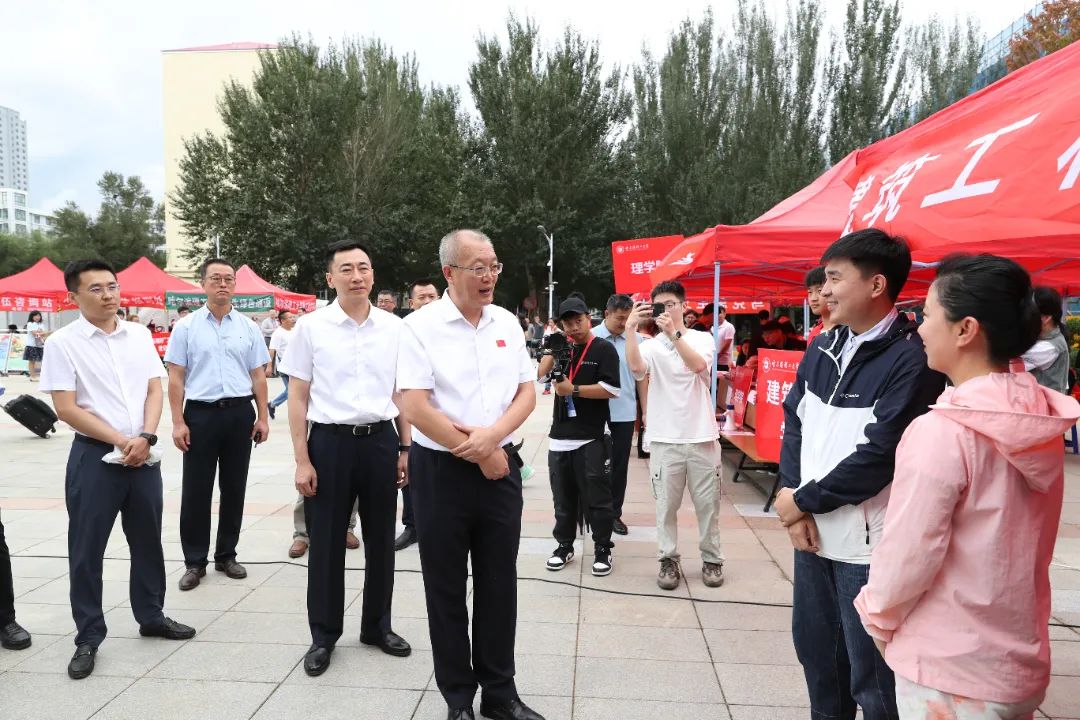 学校领导高度重视迎新工作,上午10时,校党委书记赵琳,校长刘侠,校党委副书记赵水杉,副校长杜军在相关工作人员的陪同下深入西区和南区迎新现场走访慰问。学校领导一行深入迎新接待点、志愿服务站、学生公寓、教学楼等地,慰问迎新工作人员及志愿者,与2023级新生及家长亲切交流,了解同学们的生源地、所学专业、入学感受及未来规划,并勉励同学们要尽快适应新环境,变换新角色,争做新时代的奋进者、开拓者和奉献者。学校领导详细了解了数字迎新的情况,为家庭经济困难学生发放了爱心大礼包。在迎新现场,学校领导每到一处都驻足询问、细致聆听,详细了解各项迎新工作的基本情况及各学院迎新工作的进展、新生报到流程和住宿安排、绿色通道的办理情况等,对坚守在迎新一线的各学院领导、教师、辅导员和迎新志愿者表示慰问,对他们的辛勤工作给予充分肯定。