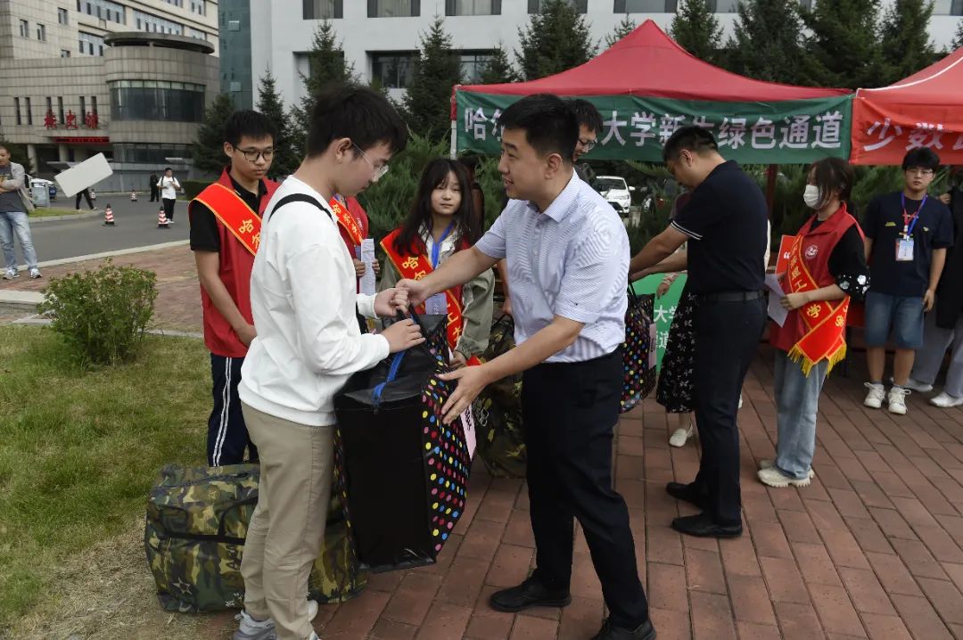 学校领导为新生发放暖心大礼包