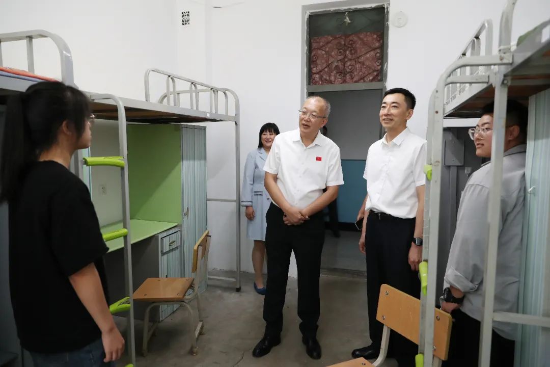 学校领导到学生公寓看望新生