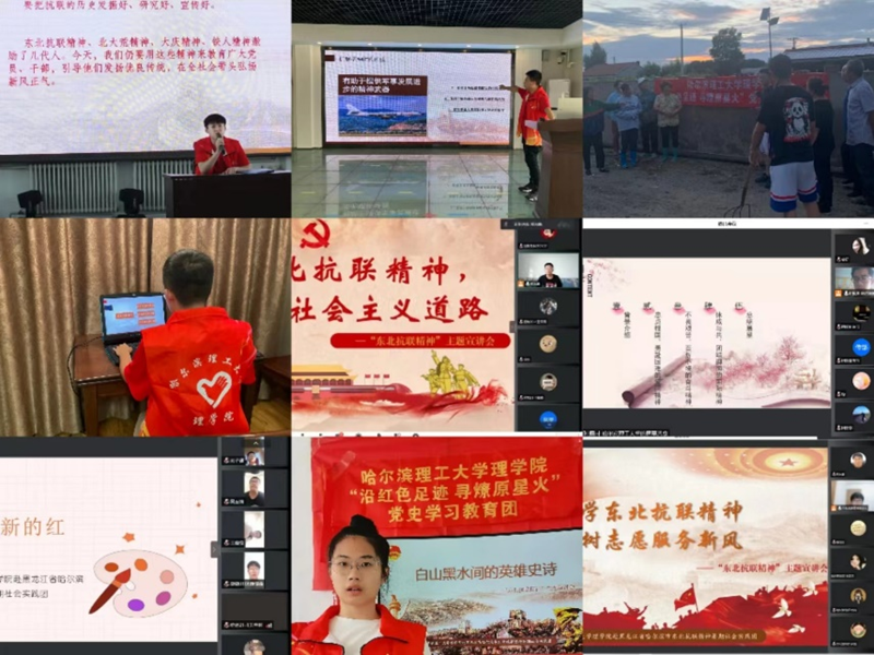 依托红色文化资源优势,理学院实践团成立了“东北抗联精神”志愿宣讲团队,先后前往黑龙江省双鸭山市友谊县友谊镇、哈尔滨市南岗区松雷社区、肇东市安民乡合发村、内蒙古自治区通辽市科尔沁左翼中旗架玛吐镇革命屯、山西省中宝铁工有限责任公司等地把党的故事、东北抗联精神、社会实践的成果,通过举行宣讲报告会等形式,成功地将抗联精神普及到基层当中,使抗联精神焕发了新的活力,让更多人铭记发生在身边的红色故事。