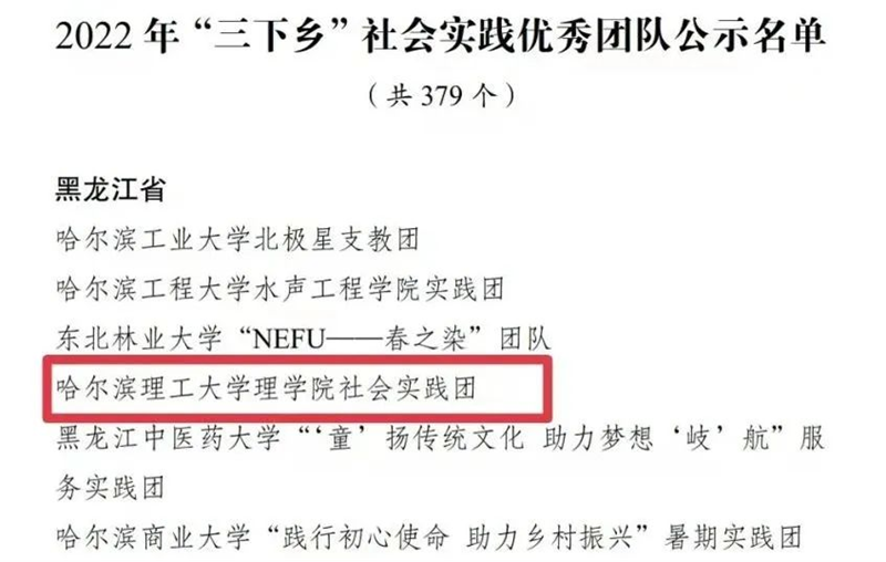 实践团队获评黑龙江省“三下乡”社会实践优秀团队