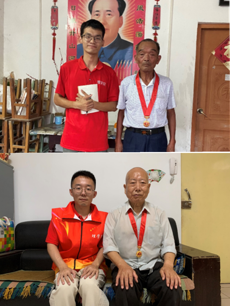 为深入探寻党史历程,更好地学习东北抗联精神,实践团邀请了2位获得“光荣在党50年”纪念章的老党员前辈进行采访座谈,用镜头和声音记录老兵鲜为人知的战斗经历,挖掘蕴藏深处的历史细节,记录真实情感的迸发瞬间,留存珍贵的“历史回声”和“老兵记忆”。56年党龄的刘忠荣,1965年入伍西藏7888部队;51年的党龄陈友忠,1969年入伍于山西1760部队,老兵们虽已高龄,但思维清晰,胸前佩戴的“光荣在党50年”纪念勋章分外耀眼。通过他们自身经历,讲述了一个个感人的革命故事,教育影响当代年轻人要听党话跟党走,努力学习充实自己,为祖国发展和民族团结做贡献。