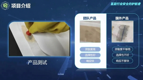 氢能源是公认的清洁能源,商业化利用已经逐渐成为市场关注的热点,氢气需求量快速增加,市场巨大,氢气的制备、储存或运输中存在着极大的安全风险,本项目从氢能行业痛点出发,研制出一种快速、安全的光学型氢敏胶带,产品打破了国外技术垄断,解决了卡脖子问题。在此基础上团队将氢敏材料与光纤传感技术结合,研制了第二代光学型光纤氢敏传感器,在确保发现氢气泄漏同时,也能第一时间确定泄漏点,实现在恶劣环境下的远的程实时监控,在提高了安全性和效率的同时,也有效降低了人力成本和风险。主要应用于化工、发电厂、核电站和新能源汽车等行业,必将在未来的氢能市场中占据一席之地,为推动氢能产业的安全发展作出积极贡献。