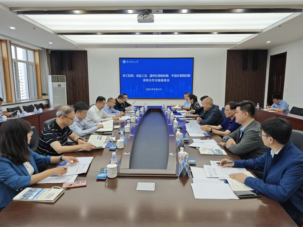 9月4日上午,哈尔滨市工信局党组书记、局长周国伟,市总工会二级巡视员董德泉,平房区委常委、组织部部长、经开区党工委委员都首明,道外区委组织部副部长刘伟一行11人来校调研交流,学校党委书记赵琳、党委副书记郭加利出席交流座谈会。