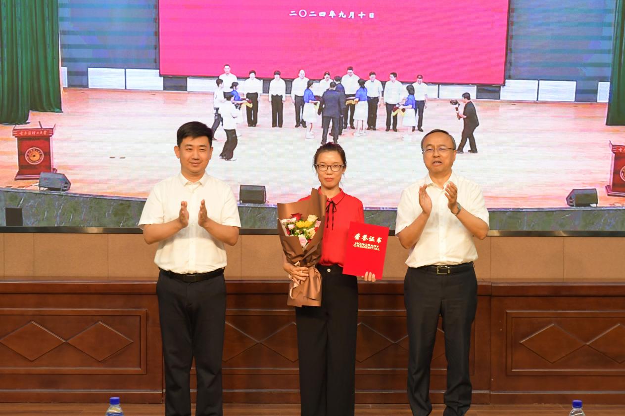 党委常委、副校长杨忠学,党委常委、统战部部长姜国玉为省部级教学和科研荣誉获奖代表颁奖