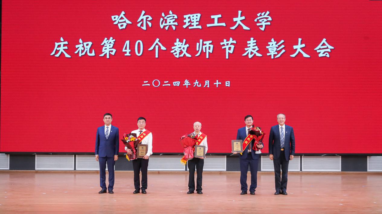 为大力弘扬教育家精神,表彰学校在教学科研、师德建设等工作中涌现出的先进集体和个人,营造浓厚的尊师重教氛围,9月10日下午,哈尔滨理工大学在西校区大学生活动中心召开庆祝第40个教师节表彰大会。党委书记赵琳,党委副书记、校长刘侠,纪委书记、监察专员孙树海,副校长杨忠学、林屹出席会议;全校中层干部,离退休教师代表,受表彰教职工代表,党外人士代表,双代会代表,研究生导师代表,新入职教师代表,学代会代表,学生代表等出席大会。副校长臧永军、杜军赴威海校区为获奖教职工颁奖,威海校区师生干部于线上同步参会。会议由党委副书记、工会主席郭加利主持。