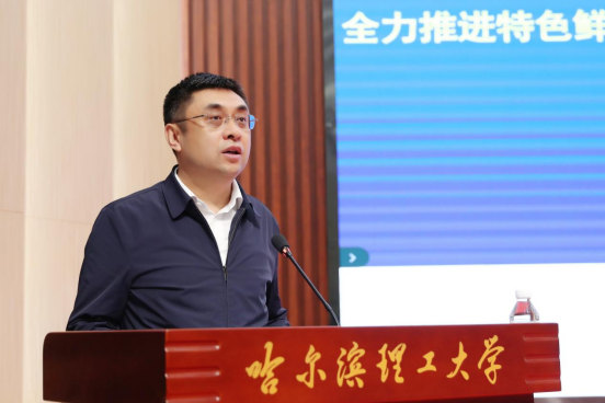 刘侠作了题为《育人为本、特色立身、科教融合、装备报国、全力推进特色鲜明的国内一流理工科大学建设》的自评工作补充汇报。报告分三个部分:一是扎根龙江沃土,办学底蕴深厚。建校以来,学校始终坚持老校长传承王大珩“崇尚实践,亦能亦德”的办学理念,扎根龙江,发展血脉中深植“装备制造DNA”。二是推进“四个回归”,育人成效显著。学科建设成效突出,形成以机电为特色、多学科协调发展格局,在多个行业领域科研实力强劲,学校打造各类育人平台,推进产教融合、科教融汇,培养了院士、将军、奥运冠军、企业家、工程技术领军人才等为代表的23万名优秀人才。三是落实以评促强,卓越体系领航。在省教育厅指导下,学校深入贯彻评估要求,全面完成自评自建工作。刘侠表示,学校将以此次评估为新起点,不断完善本科育人体系,推动本科教育教学工作迈上新台阶,为教育强国建设贡献理工力量。
