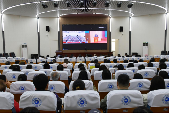 学校教育教学督导委员会委员、学校教育教学指导委员会委员、全校副处级以上干部、各专业负责人、各部门联系人、联络员、全体辅导员参加线下会议,荣成学院线上参会。(摄影:耿洪杰)