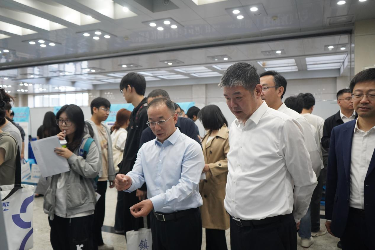 推介会后,校地双方领导共同参观学校金属切削刀具馆,了解学校在特色学科领域的科研与教学成果;随后巡场2025“相约福地才聚镇江”校园双选会。此次双选会吸引32家镇江重点企业参会,提供近1000个覆盖机械工程、材料科学与工程、管理科学与工程等学校优势学科领域的优质岗位。学校就业指导教师为参会学生提供简历优化、岗位匹配等一对一指导,现场咨询投递氛围热烈,充分彰显学校为毕业生就业保驾护航的责任与担当。