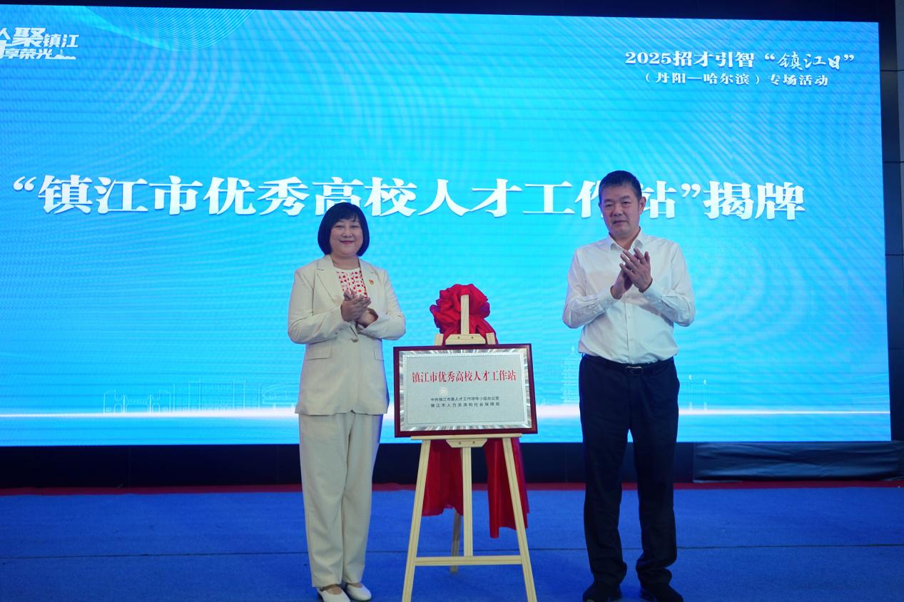 校地双方领导为哈尔滨理工大学“镇江市优秀高校人才工作站”揭牌