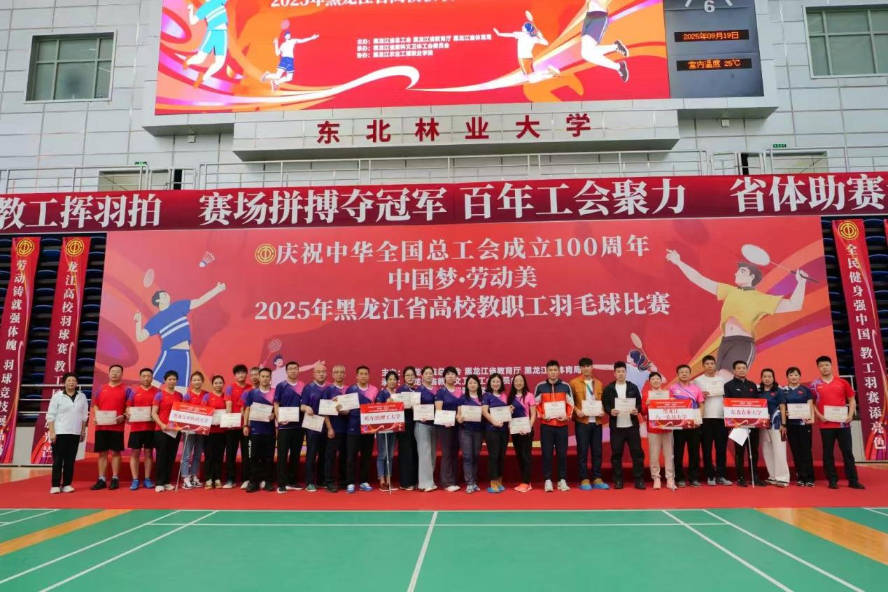 9月17日至19日,由省总工会、省教育厅、省体育局联合主办,省教科文卫体工会承办的“中国梦·劳动美——凝心铸魂跟党走 团结奋斗新征程”2025年黑龙江省高校教职工羽毛球比赛在东北林业大学体育馆举行。本次赛事汇聚全省高校的42支队伍、536名教职工在为期三天的赛程中同场竞技、一展风采。