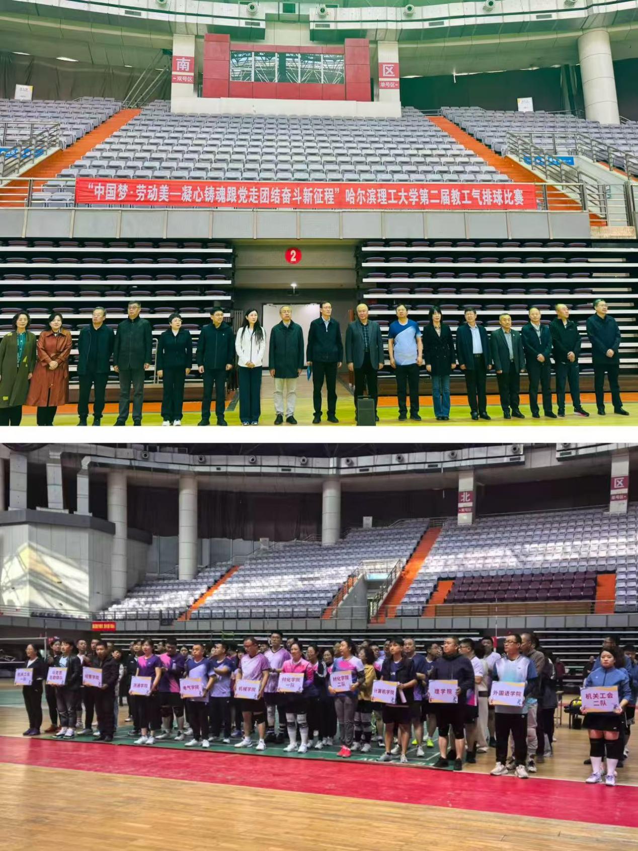 为深入贯彻落实习近平总书记关于体育工作的重要论述精神,积极响应省教科文卫体工会“中国梦·劳动美——凝心铸魂跟党走 团结奋斗新征程”主题宣传教育活动号召,进一步弘扬校园体育文化,丰富广大职工业余文化生活,促进职工身心健康与团队建设,10月13日-10月17日,第二届教职工气排球比赛在体育馆成功举办。校党委副书记、工会主席郭加利,纪委书记、监察专员孙树海,副校长臧永军,相关职能部处负责人及各二级单位工会主席出席了开幕式,来自全校一百余名运动员和观众参加了开幕式。开幕式由校教工气排球协会会员李居南主持。