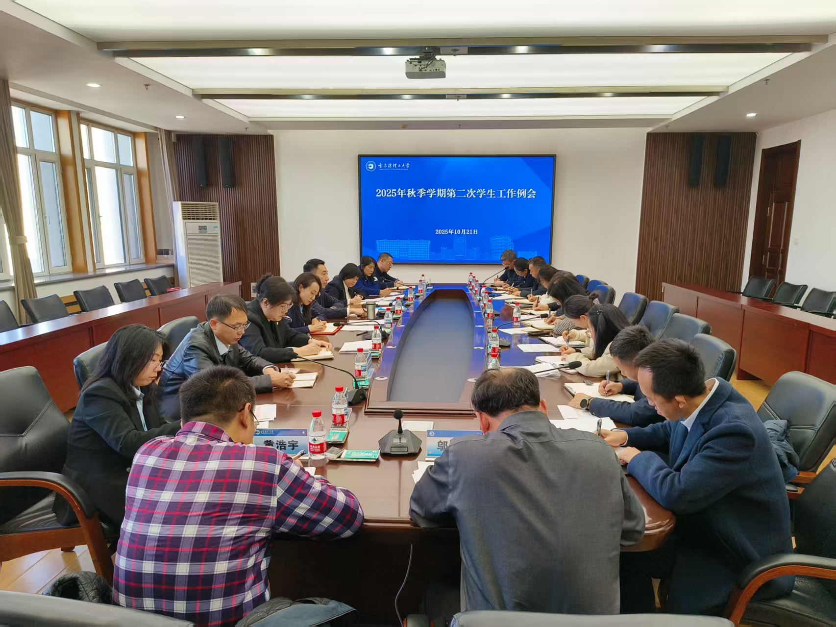 10月21日下午,学校在教学主楼第二会议室召开2025年秋季学期第二次学生工作会议,学校党委副书记赵水杉出席会议并讲话,会议由党委学生工作部部长戴湘竹主持。
