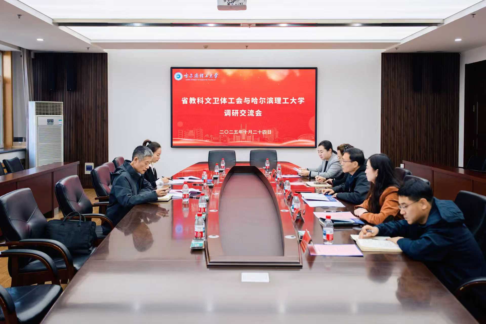 本次调研以“学校工会工作总体汇报、基层工会专项建设汇报、职工之家实地踏查”为核心脉络有序推进。会上,郭加利对省教科文卫体工会长期以来给予学校工会工作的支持表达诚挚感谢。他表示,在省教科文卫体工会的精准引领下,学校工会在品牌赛事打造、先进典型选树、工匠学院建设等关键工作中获得了宝贵资源与专业指导,为学校工会工作提质增效、助力学校“双一流”建设提供了坚实保障。单鹂娜作工作汇报,哈尔滨理工大学工会在省教科文卫体工会和学校党委的坚强领导下,坚守“以教职工为中心”的工作导向,紧扣立德树人根本任务,以“精准化服务强保障、多元化活动聚活力、规范化建设提质效”为抓手,持续推动工会工作提质增效;同时结合实际,就省教科文卫体工会“十五五”发展规划提出具体建议,为规划编制提供实践参考。