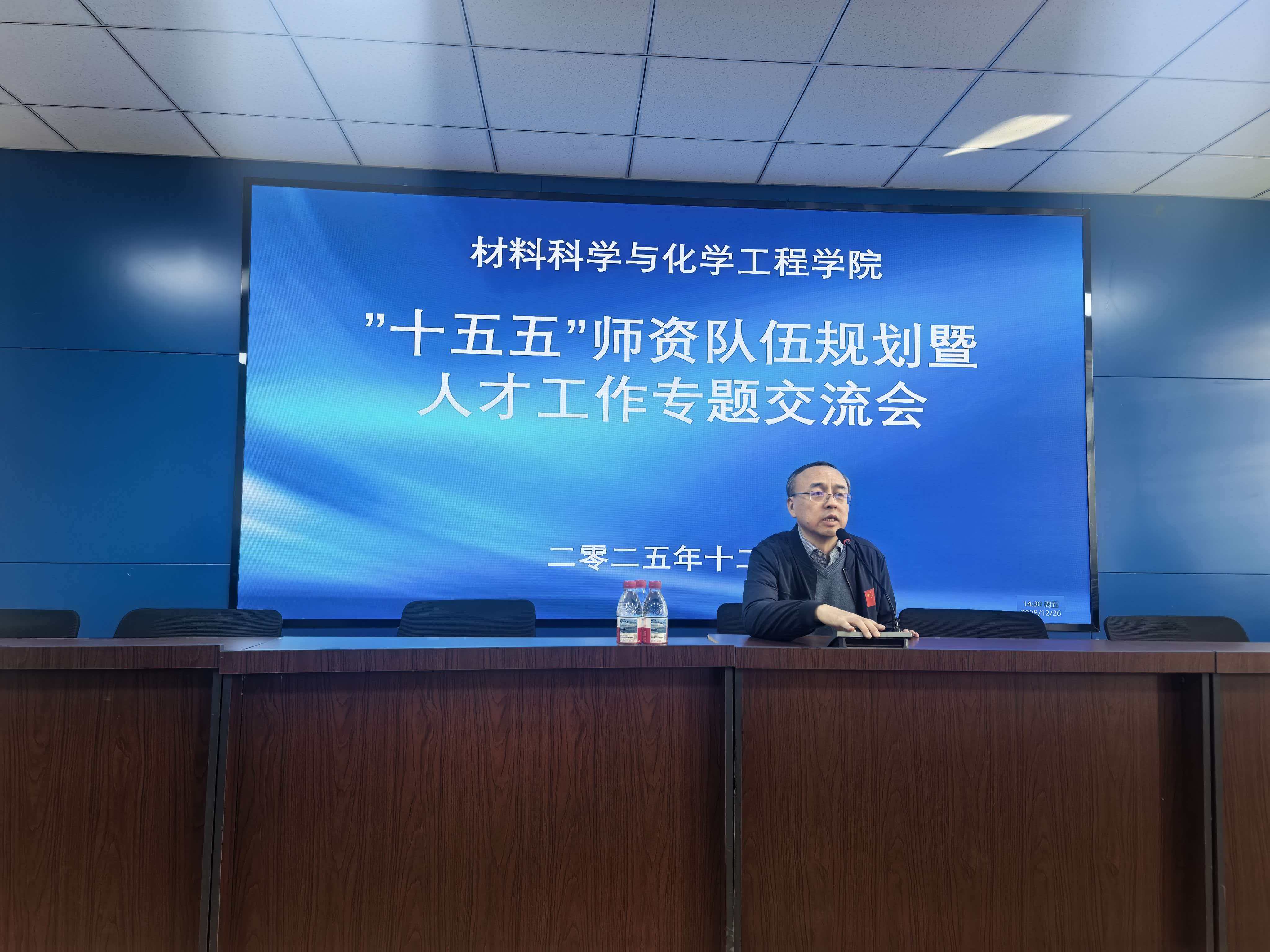 为科学谋划学校未来五年发展蓝图,深入实施新时代人才强校战略,扎实推进高层次人才队伍建设,12月26日下午,副校长臧永军深入材料与化学工程学院召开“十五五”规划暨人才工作专题交流会,学院领导班子、全体教师参加会议。